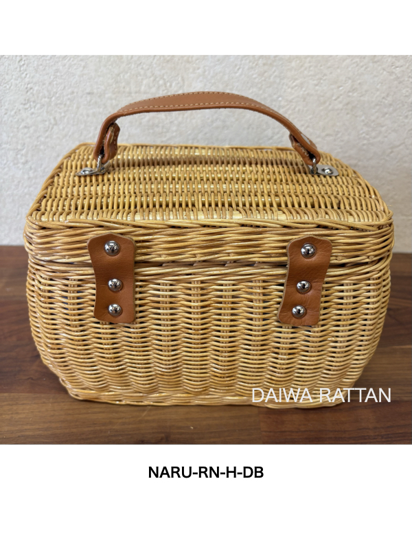 NARU-RN-H-DB 日本製 籐素材 なるちゃん ひねり金具 本革ハンドル(内布ラミネートDB)
