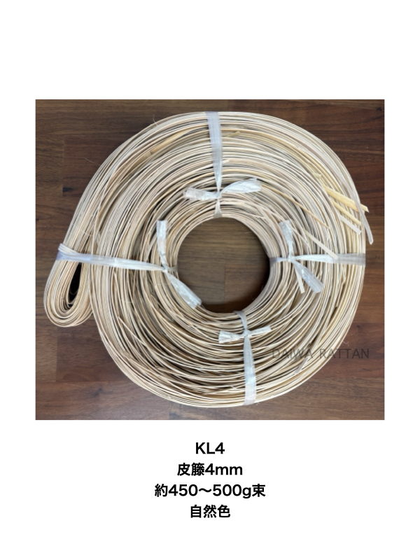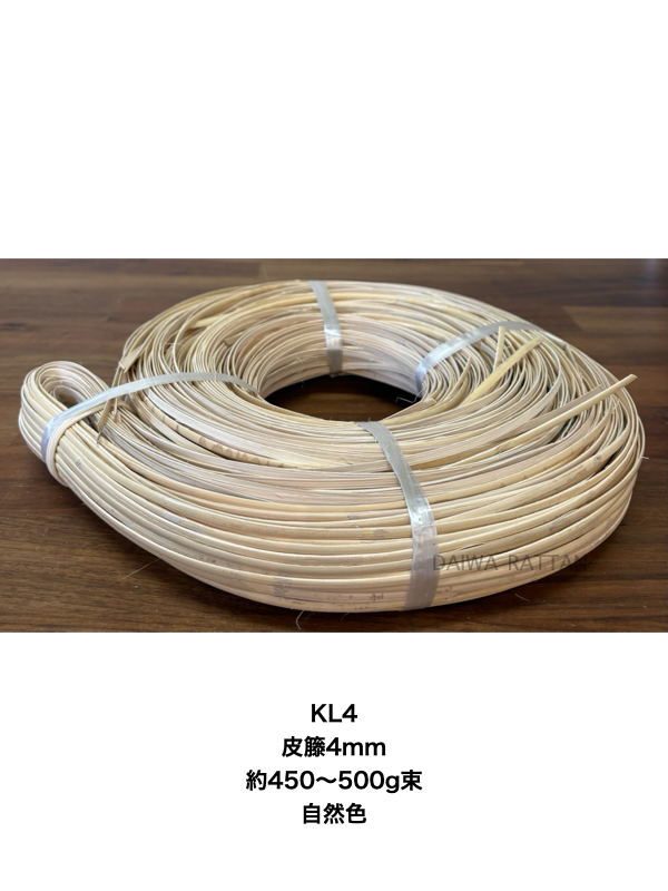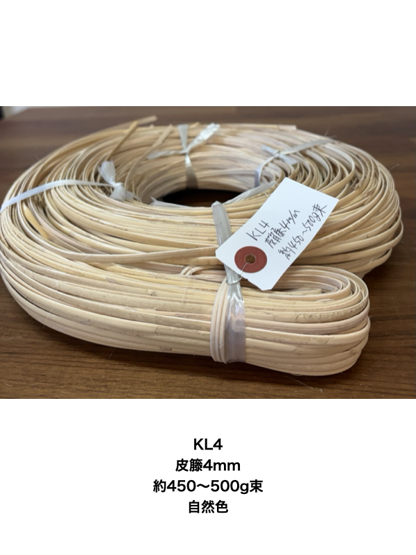 KL4 皮籐4mm 約450〜500g 巻束(自然色)