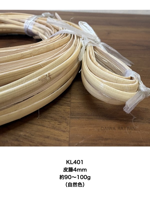 KL401 皮籐4mm 約90〜100g 巻束(自然色)